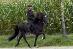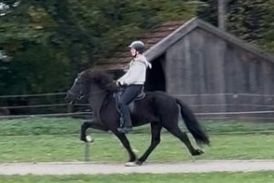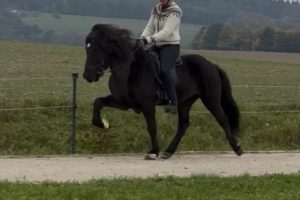 Er verfügt über sehr viel flüssigen, leicht zu reitenden Tölt bei guter Bewegung und guten Grundgangarten.